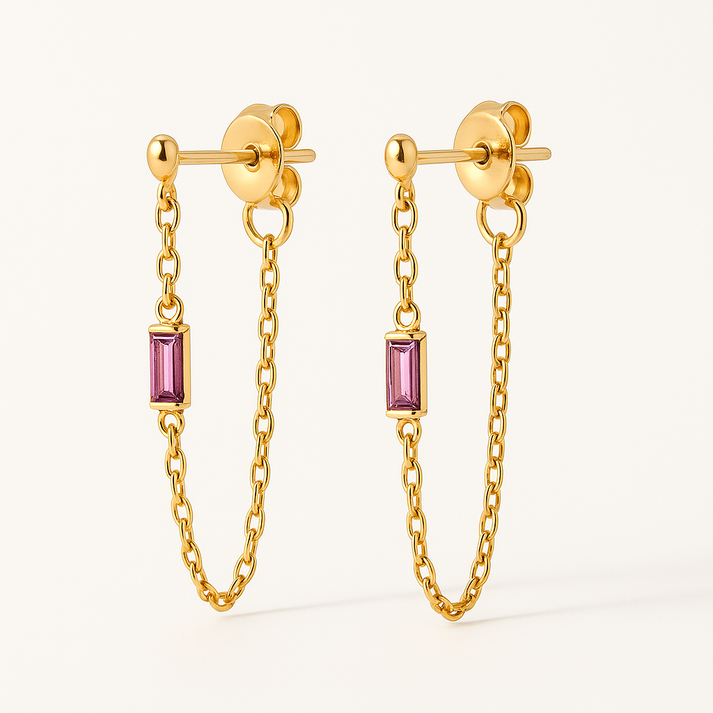 Pink Mini Chain Earring Delicadeza y carácter en una sola pieza. Este arete tipo cadena mini combina un diseño sutil con un toque de color rosado que aporta frescura y feminidad. Su acabado en baño de oro realza su elegancia, mientras que su resistencia al agua lo convierte en una opción práctica para el uso diario. Ligero y cómodo, es ideal para quienes buscan un accesorio discreto pero con personalidad, perfecto para llevar solo o en combinación con otros aretes.