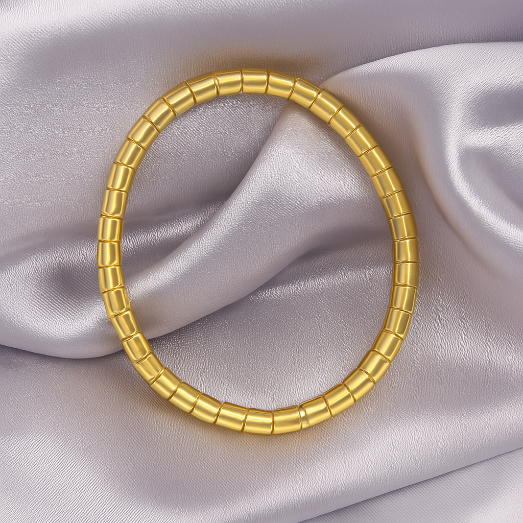 SNAKE BANGLE Elegancia con actitud. La Snake Bangle está elaborada en acero inoxidable de alta calidad, con un diseño inspirado en la silueta de una serpiente: fluido, envolvente y lleno de carácter. Su acabado pulido y su resistencia al agua la convierten en una pieza duradera, ideal para quienes buscan un accesorio con fuerza simbólica y estilo contemporáneo.