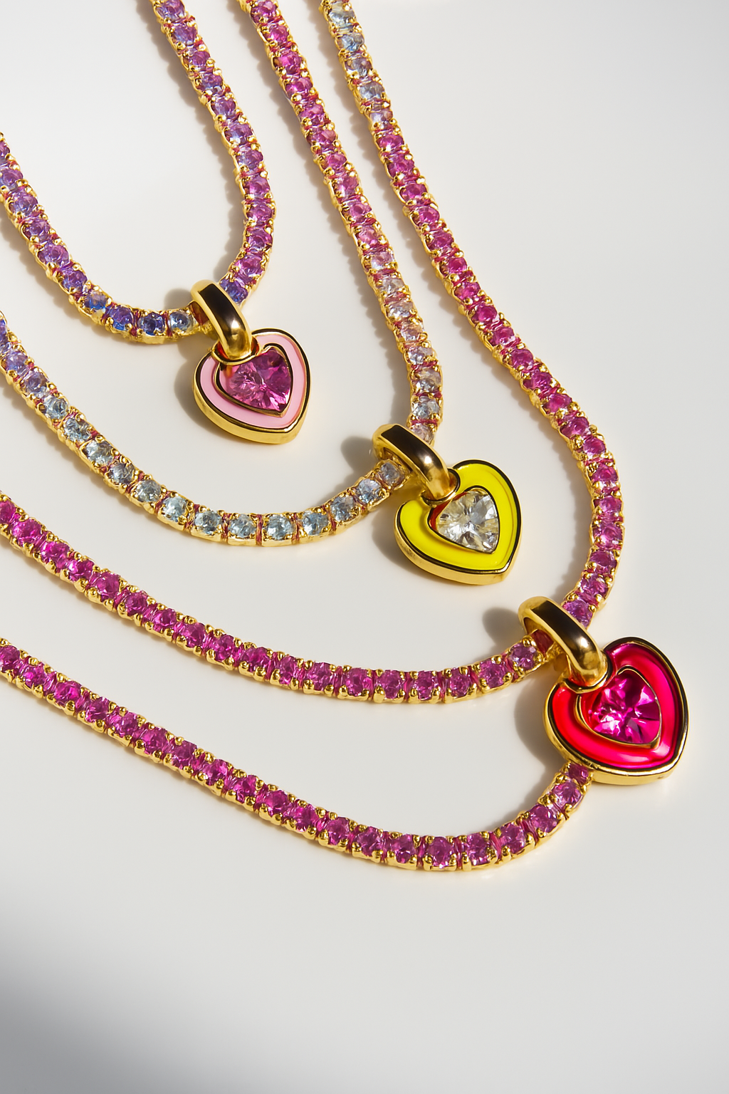 Tennis Chin Enamel Heart Una fusión perfecta de romanticismo moderno y elegancia atemporal. Este collar tipo tennis, adornado con un delicado dije de corazón esmaltado, está diseñado para iluminar cualquier estilo con un toque de ternura y sofisticación.