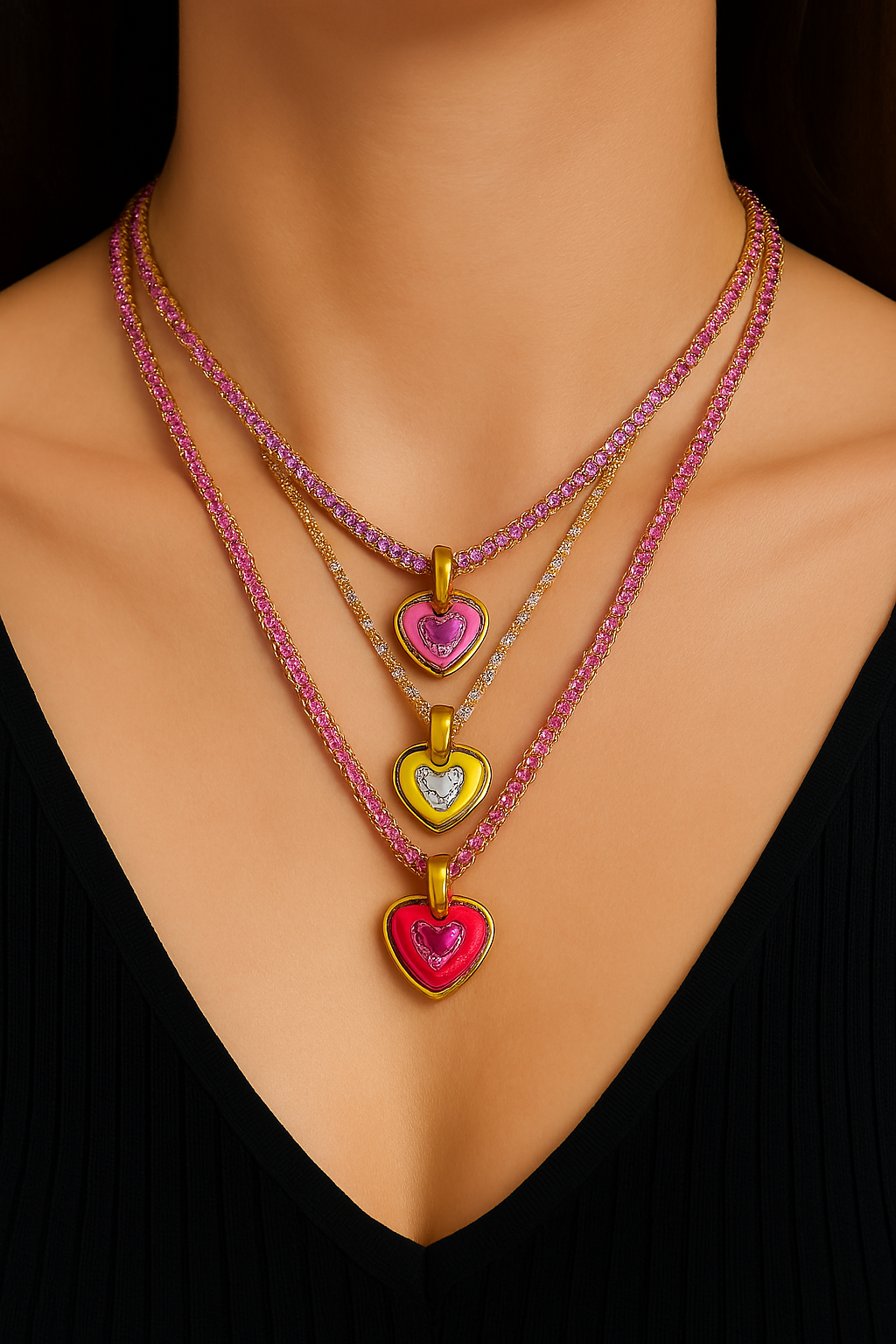 Cada piedra resalta con brillo impecable, y el corazón esmaltado añade un detalle encantador que captura la mirada y el alma. Fabricado para resistir el uso diario sin perder su encanto, es una pieza que dice mucho sin decir una palabra